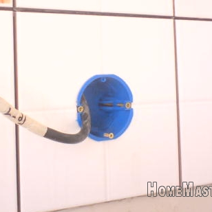 Для установки домофона выберите место рядом с дверью и установите подрозетник: отступ от двери не менее 30см, высота 150-160см.